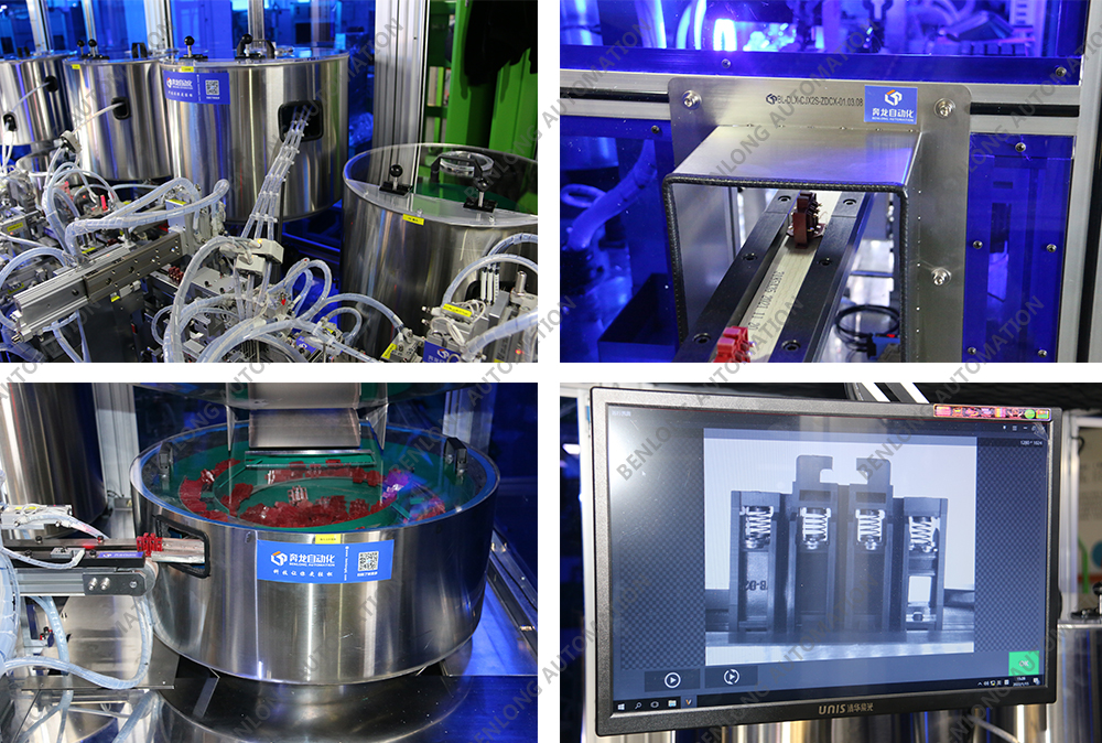 具有自动上料、插芯装配、底座装配、主辅静触头装配、人工装配宝塔弹簧、锁上下盖螺丝、锁瓦片螺丝、通断、耐压、功耗、前倾吸合、后倾释放、开距、超程、