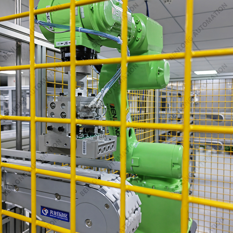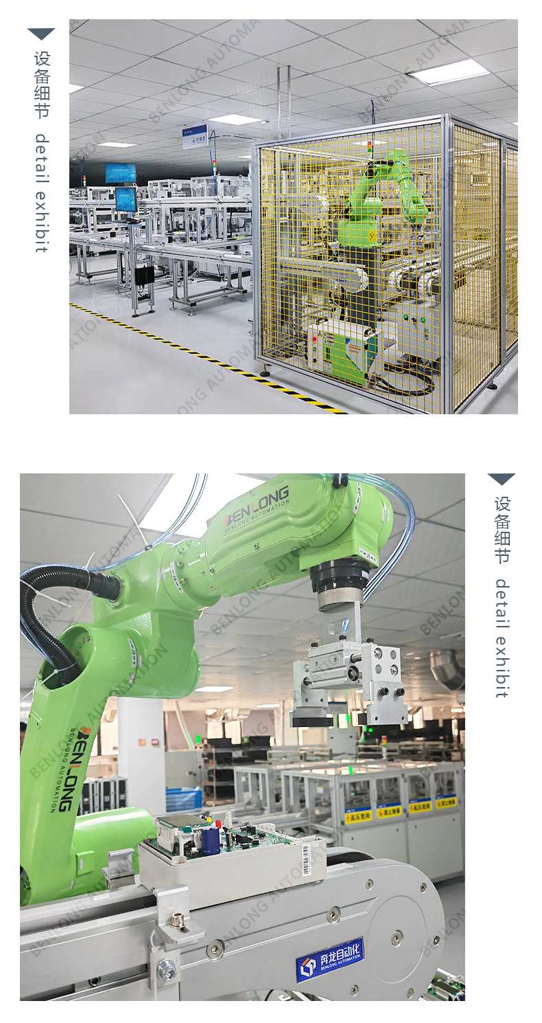 能检测、蓝牙通讯检测、复校检测、装配铭牌、扫码资产信息数据对比、合格不合格区分、包装、码垛、AGV物流、