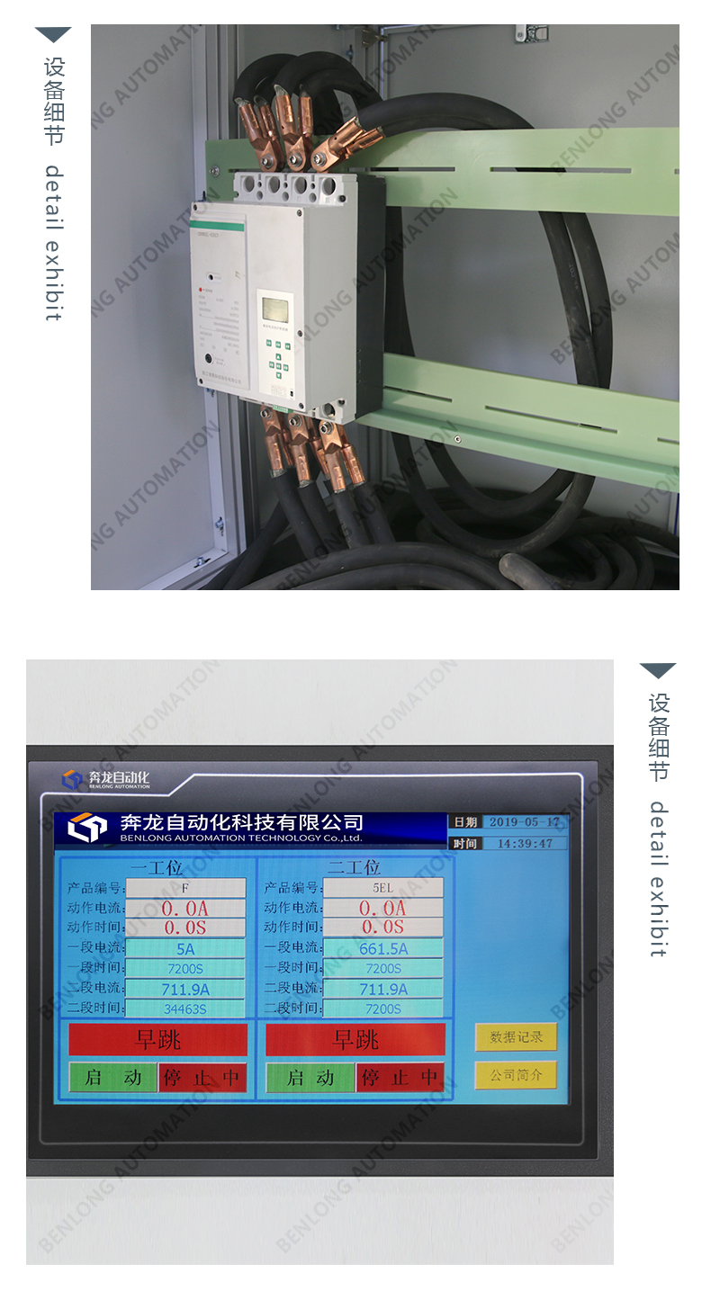 具有工位数可定制、63A~800A兼容、人工上料、条码识别、不良品显示、不良品监控数据、检测时间可任意设定、检测电流可任意设定、间隔时间