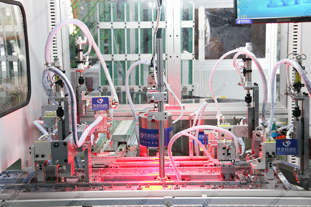 具有自动装配、零件有无检测、CCD尺寸检测、不良品区分、缺料报警、翻转竖立等工序的在线监测、实时监控、质量溯源、条码识别、