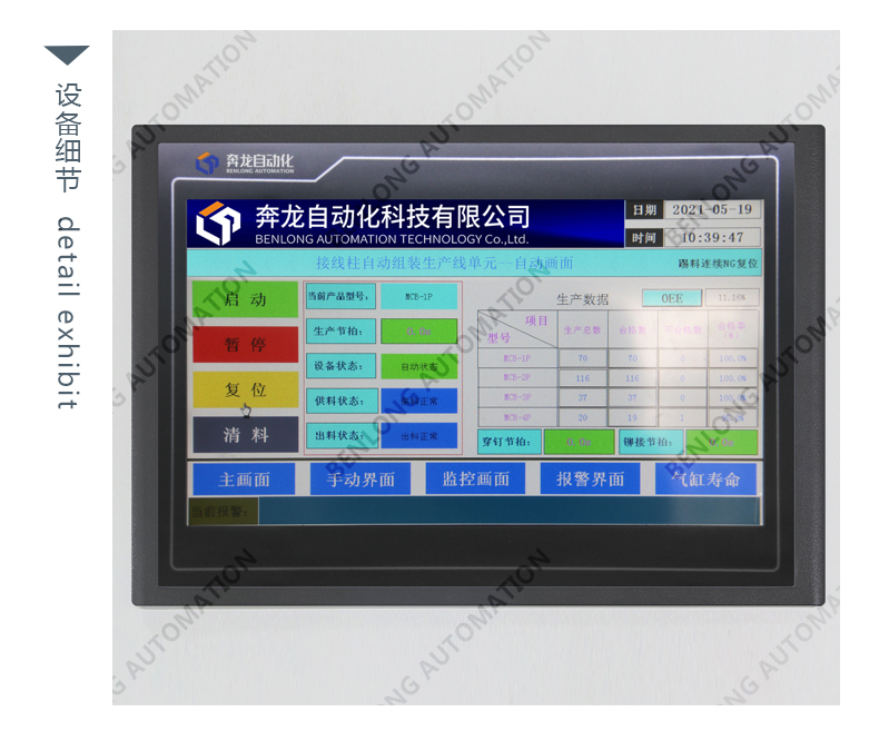 具有自动上料接线柱、接线板、螺丝、组装、扭力检测、合格不合格区分、下料工序的装配、在线检测、实时监控、数据存储、MES系统与ERP系统联网、参数任意配方、智慧能源分析与节能管理系统、智能装备服务大数据云平台等功能。