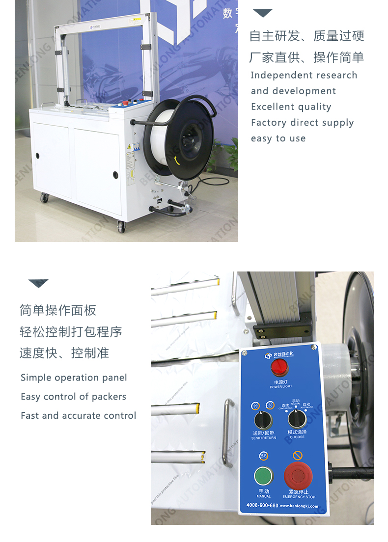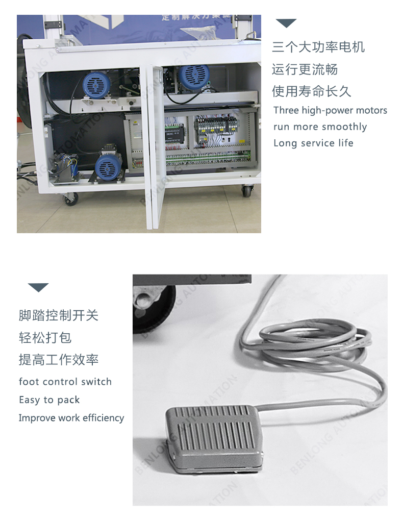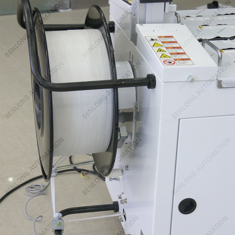 人工放料或其他包装设备出料口自动放料,自动捆扎。