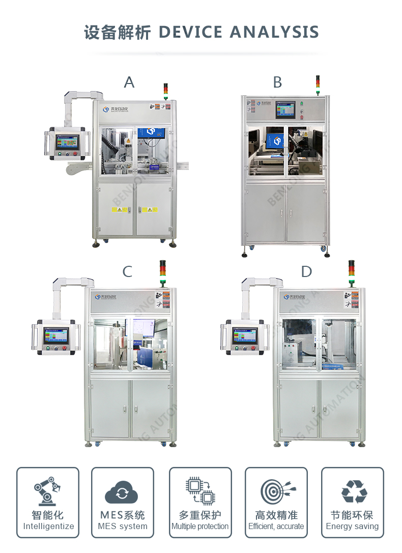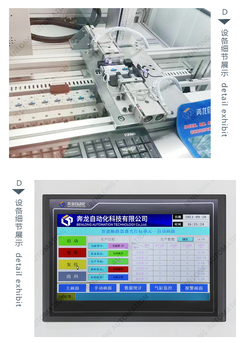 具有自动激光打标二维码或产品ID码、CCD检测、不良品区分、缺料报警、竖立翻转水平、水平翻转竖立等工序的在线监测、实时监控、