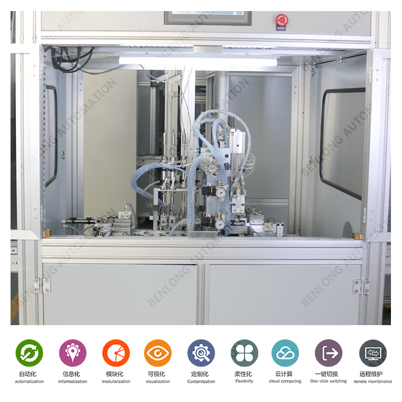 具有自动多极拼装、CCD视觉检测、不良品区分、缺料报警、翻转竖立等工序的在线监测、实时监控、质量溯源、条码识别、关键元器件寿命监测、