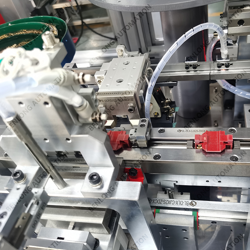 具有自动上料、插芯装配、底座装配、主辅静触头装配、人工装配宝塔弹簧、锁上下盖螺丝、锁瓦片螺丝、通断、耐压、功耗、