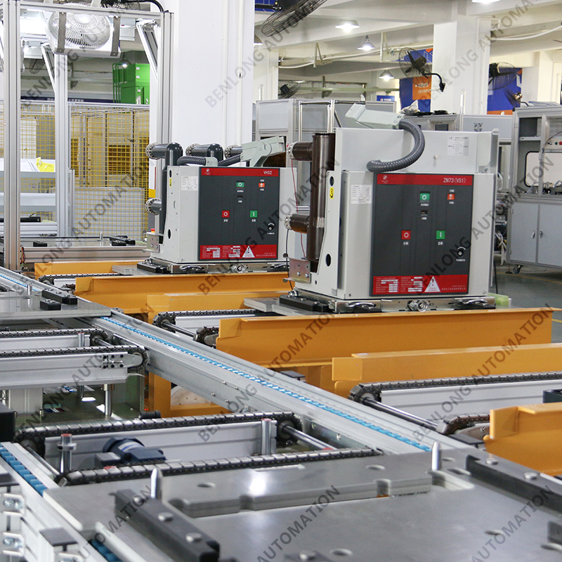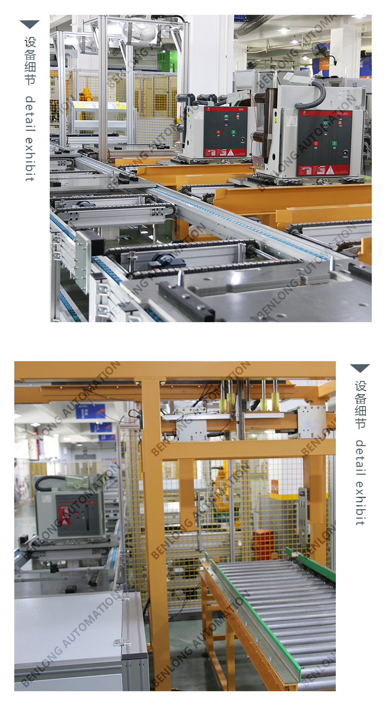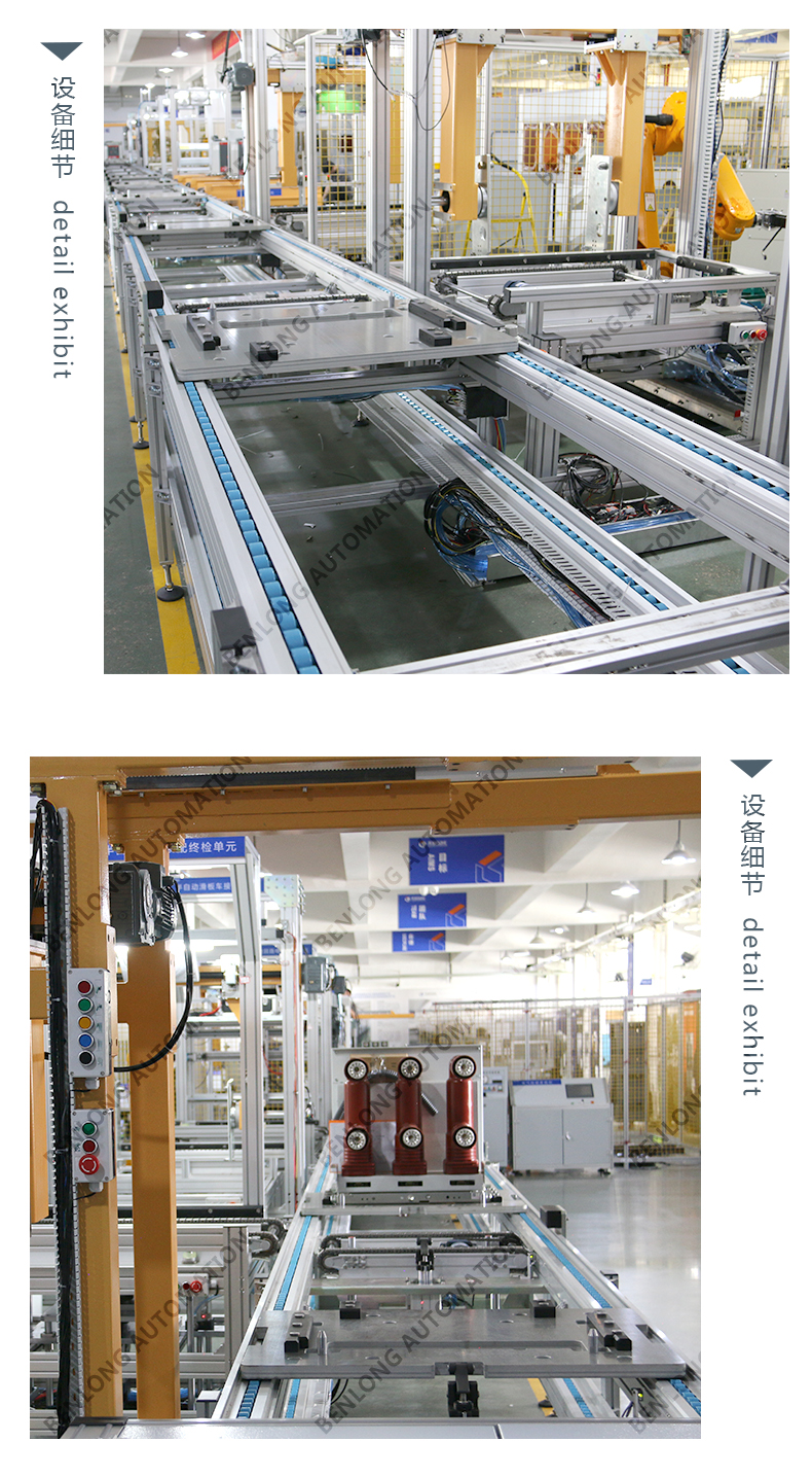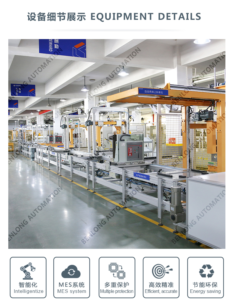具有自动AGV物流输送、龙门架自动上料、倍速链物流、绝缘筒装配、灭弧室装配、初调装配、初调翻转、机器人锁螺丝、开距、超程、